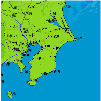 ネットで見たら,局地的に降っている.時間を追うと,埼玉で発生した雨雲が千葉を通過しているところだった.
